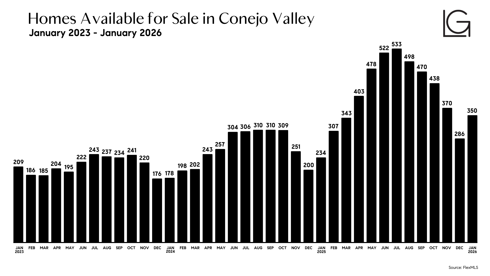 As we move through early 2026, the number of homes available for sale in Conejo Valley is trending up compared to previous years. That doesn’t mean we’re flooded with inventory — but it does mean buyers are starting to see: